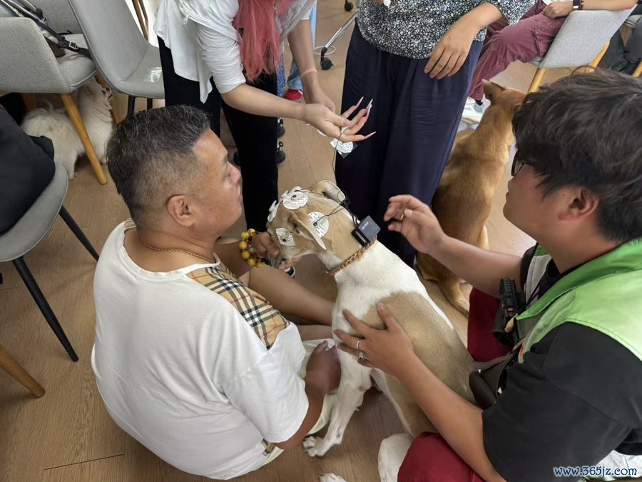 从本年6月运转,位于闵行浦江镇的三三宠物公益中心,一场罕见的执行正在进行。来自上海交通大学医学院附属精神卫生中心的科研团队,为参加执行的两边指导脑波采集仪器,一方是学生志愿者,另一方则是疗愈犬,王人要戴上脑机斥地,汇集到的脑波数据将被汇集分析,从而解答一系列问题:撸狗为何可以疗愈东谈主心?能否对网瘾治疗起到作用?背后的机制又是如何产生作用的?